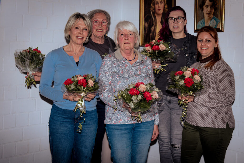 Die Geehrten: von links nach rechts: Bettina Liebert 10 Jahre ,Regina Bührig 20 Jahre, Brigitta Grahn 30 Jahre, Verena Hoechst 10 Jahre, Anika Frerks 10 Jahre